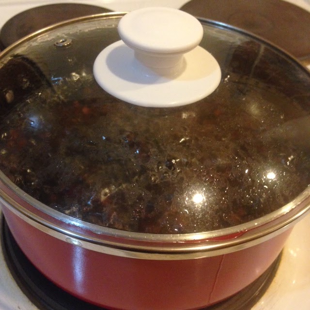 注意!噴きこぼれ。適宜水を加えて阻止。(笑)