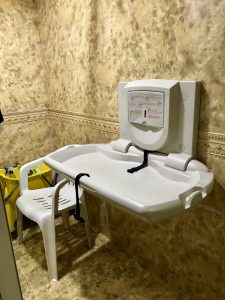 手洗い場からの仕切り壁があって、混雑中も人目を気にせずにおむつ替えができそうです。
